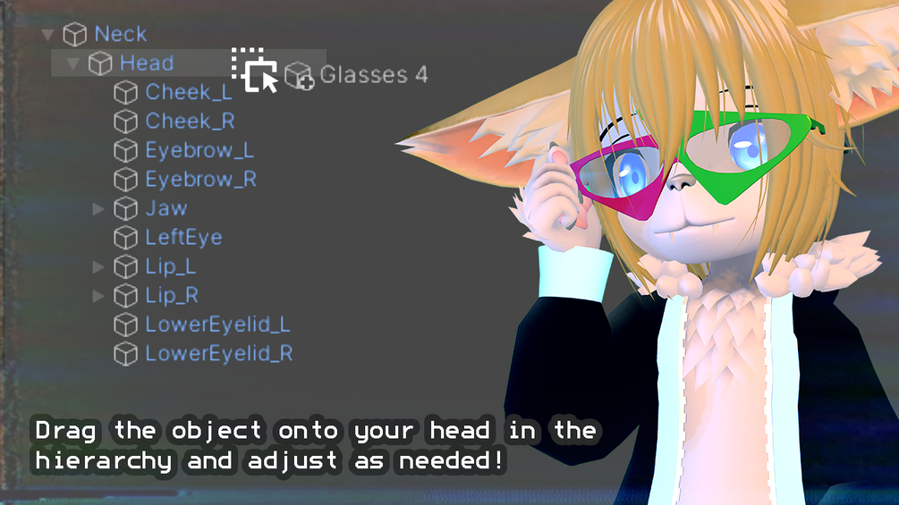 Each model has blend shapes for adjustments for the bridge length, arm length and an option to hide the arms completely instead.